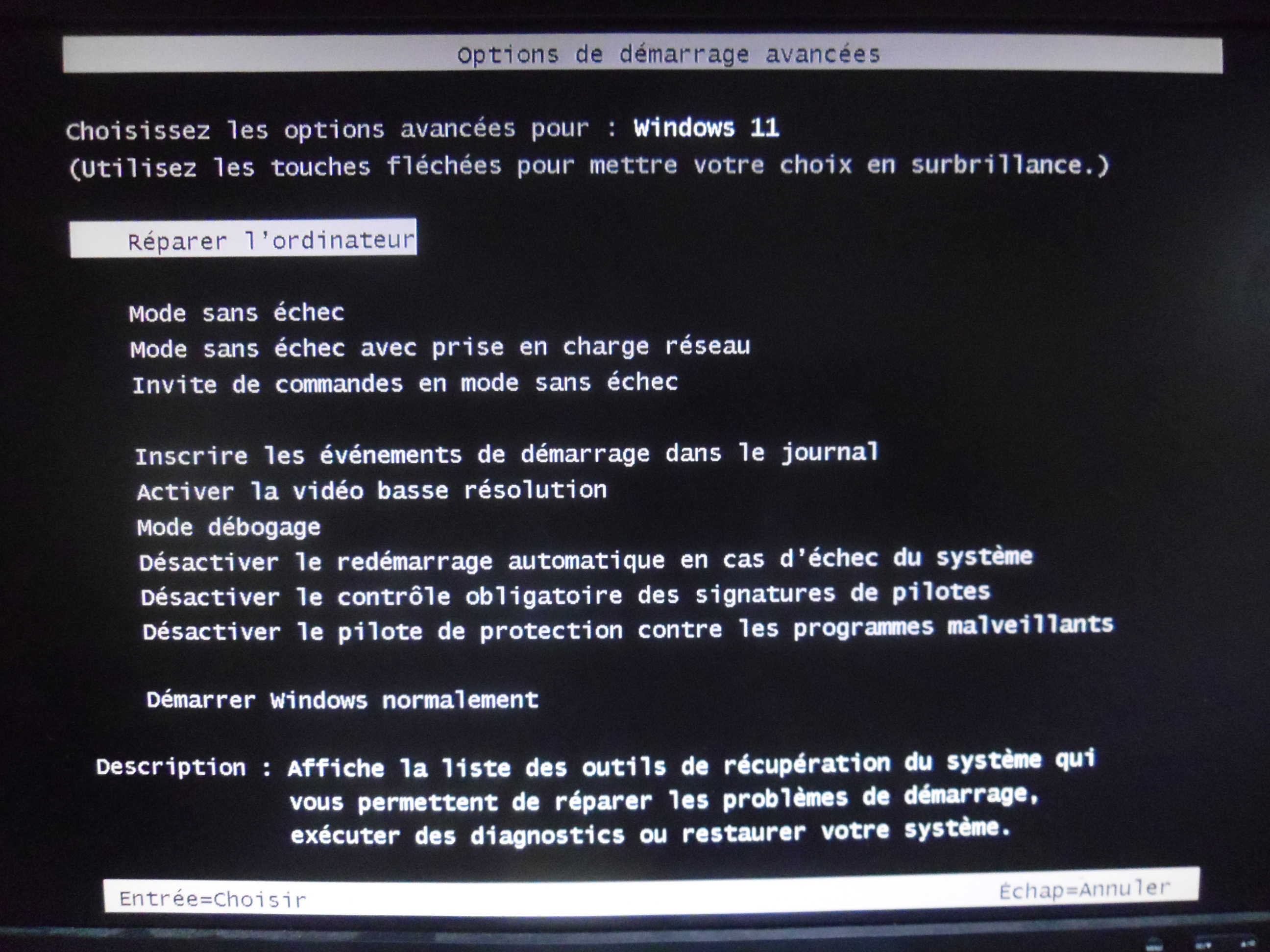 inattendu sur mon PC portable (Windows 7) : En mode sans échec
